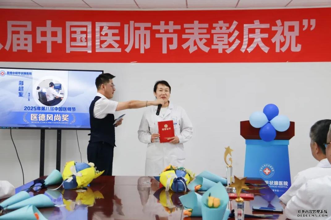 此次医师节活动不仅是对优秀医务人员的表彰与激励,更是对全院同仁的鼓舞与鞭策。昆明中研甲状腺医院将以此次活动为契机,继续秉持“德馨于行 技精于勤”的理念,不断提升医疗水平和服务质量,为甲状腺疾病患者提供更优质的诊疗服务,为健康中国建设书写新的篇章